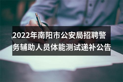 根据2022年南阳市公安局公开招聘警务辅助人员工作安排,现将报考南阳市公安局警务辅助人员职位体能测试递补工作有关事项公告如下: