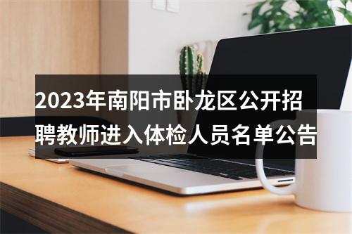 原标题:2023年南阳市卧龙区公开招聘教师进入体检人员名单公告