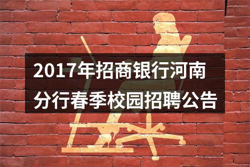 声明:专注 2017年招商银行河南分行春季校园招聘公告 相关岗位分析;专业指导面试技巧;保障就业成功概率。